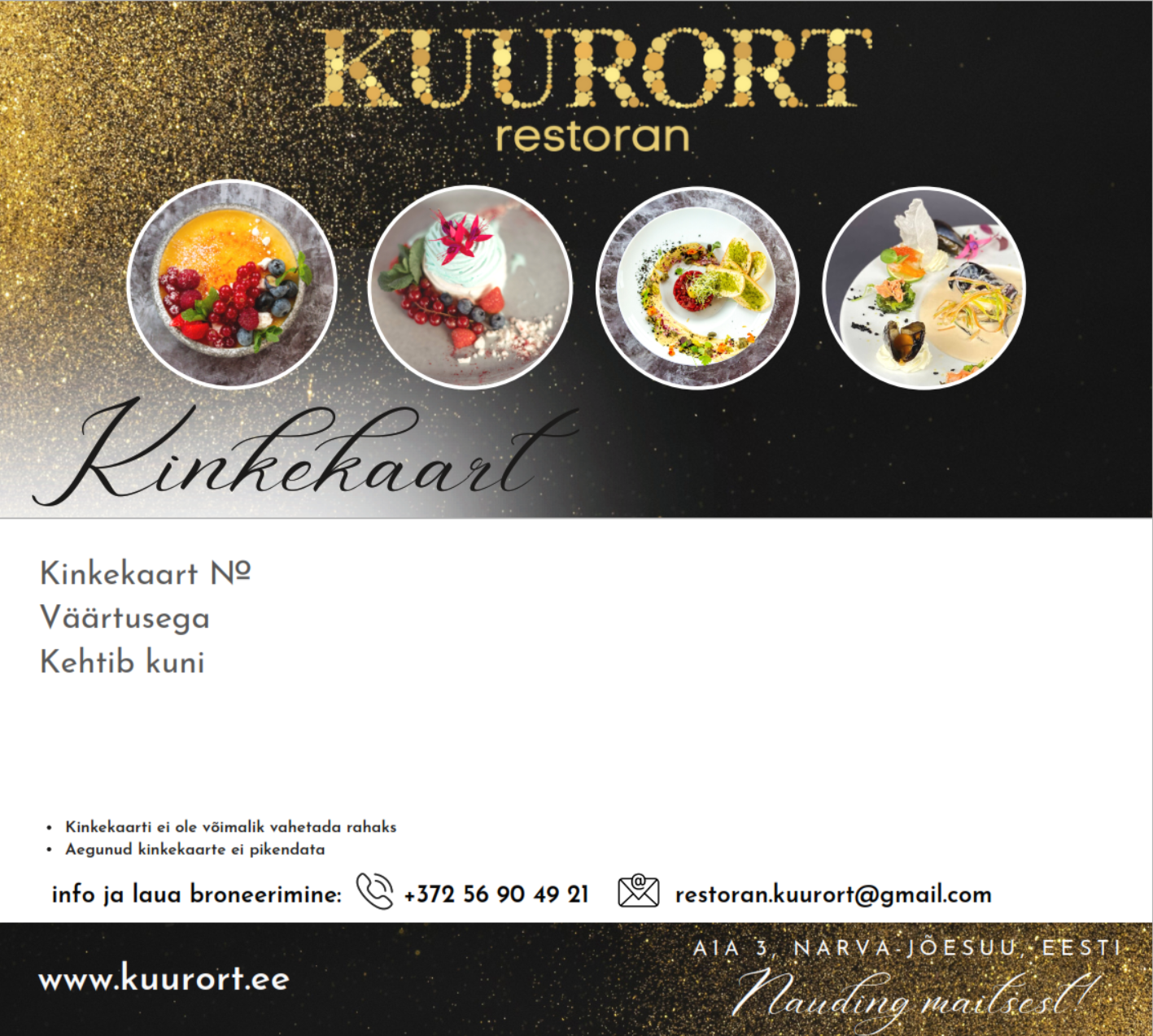 • Kinkekaarti ei vahetata rahaks ega teiseks kinkekaardiks